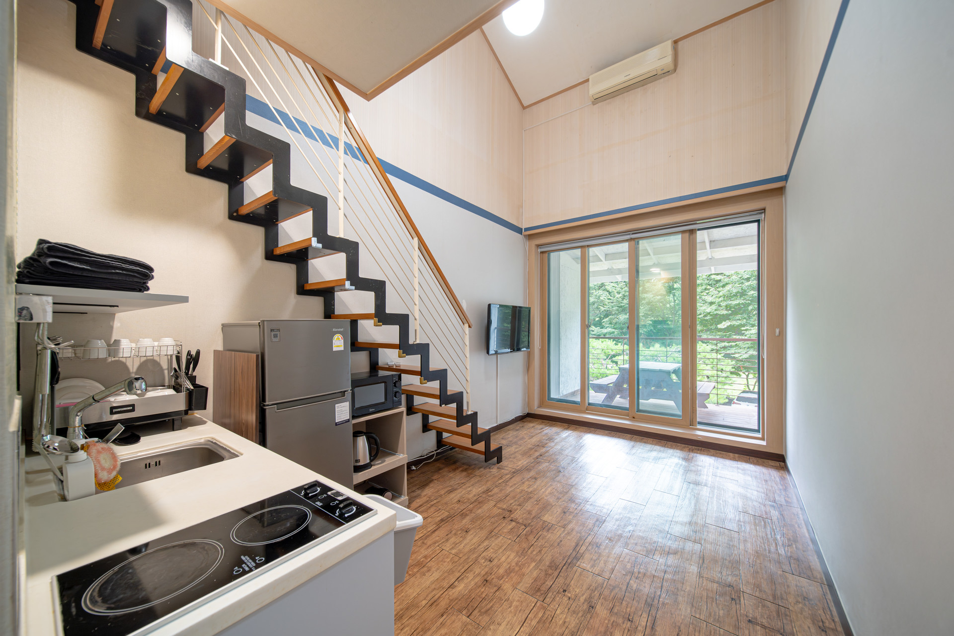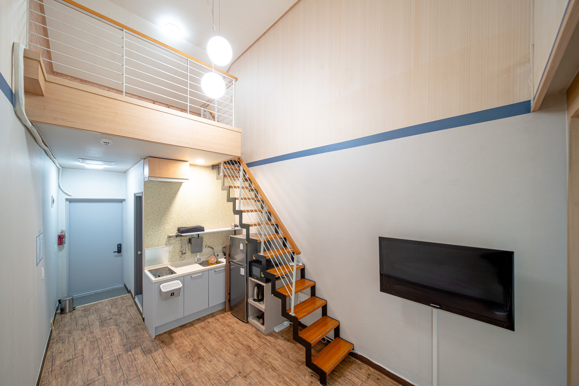 복층 원룸형 타입으로 적당한 크기의 객실입니다
